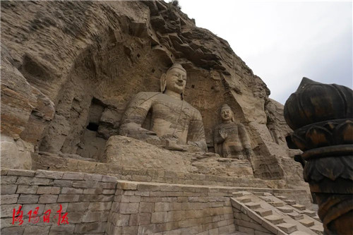 云岡石窟位于山西省大同市,石窟依山開鑿,東西綿延約1公里,存有主要洞窟45個,大小窟龕252個,石雕造像51000余軀。云岡石窟形象地記錄了印度及中亞佛教藝術(shù)向中國佛教藝術(shù)發(fā)展的歷史軌跡,反映出佛教造像在中國逐漸世俗化、民族化的過程。