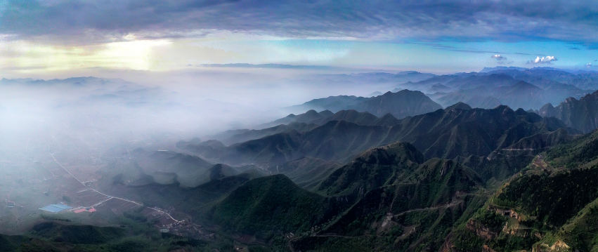 清晨,山間彌漫著輕霧