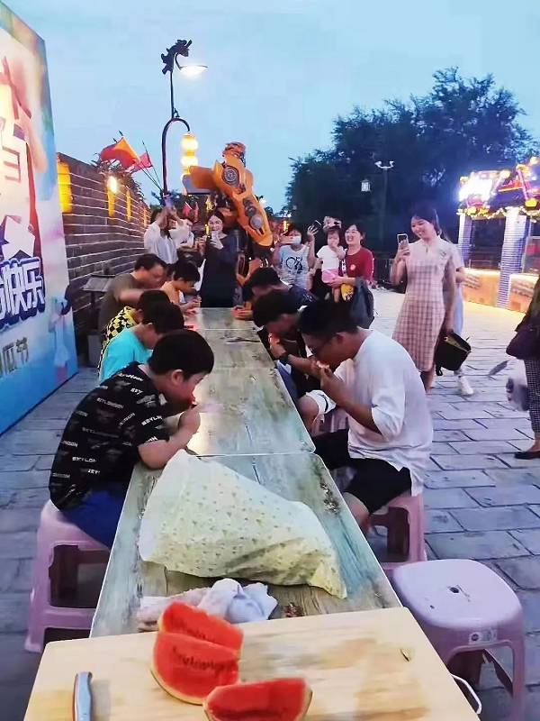 開(kāi)封城墻景區(qū)“王婆杯”西瓜大賽第二屆即將拉開(kāi)帷幕。比賽分別為單人吃西瓜、蒙眼吃西瓜、西瓜猜重量等各種趣味比拼等你來(lái)參與,勝者還有好禮相送哦!
