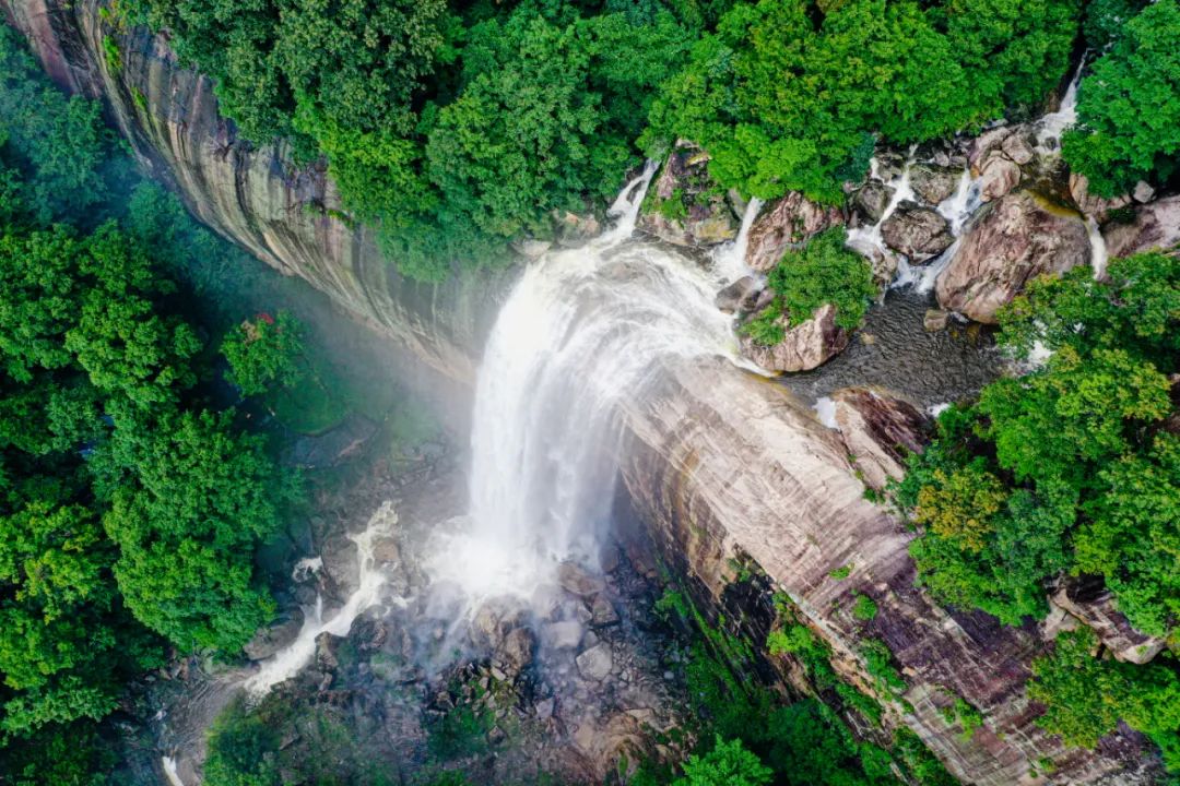 水在白云山下游豪邁壯闊,流經(jīng)九龍大峽谷,聽(tīng)到雷鳴般的響聲,在九龍瀑布下觀看,更加令人驚心動(dòng)魄,直下數(shù)千尺,新月如簾鉤,都不足形容它的美。