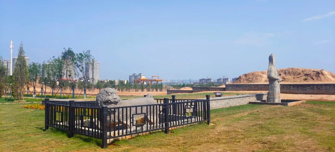進(jìn)入永厚陵遺址公園,神道兩側(cè)依次分布著鵲臺(tái)、乳臺(tái)等夯土遺址以及石像生。宋時(shí)修建皇陵,一般都是在高大的夯土層外包青磚,然后再在上面修建樓闕。
