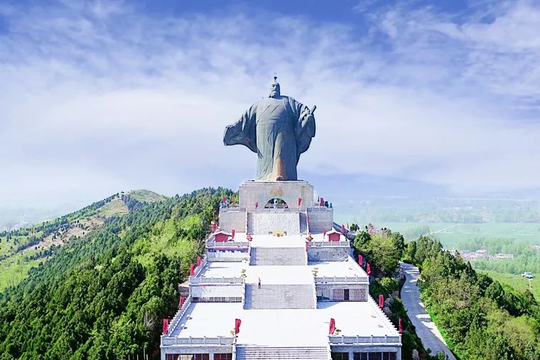山頂立劉邦銅像一尊,高39.9米,為亞洲最高歷史人物鑄銅雕塑。區(qū)內(nèi)有劉邦紀念園、劉邦隱匿的密云洞、高祖廟、漢代禮制基址、張飛寨等景點。