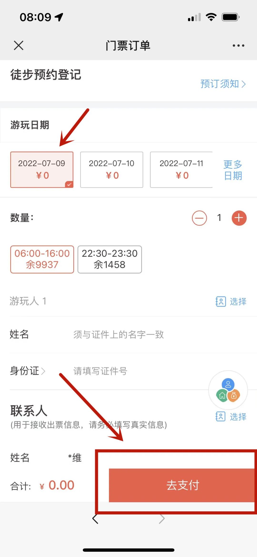 選擇入場(chǎng)時(shí)間,填寫入場(chǎng)人員數(shù)量、姓名、身份證號(hào)、手機(jī)號(hào)等信息;