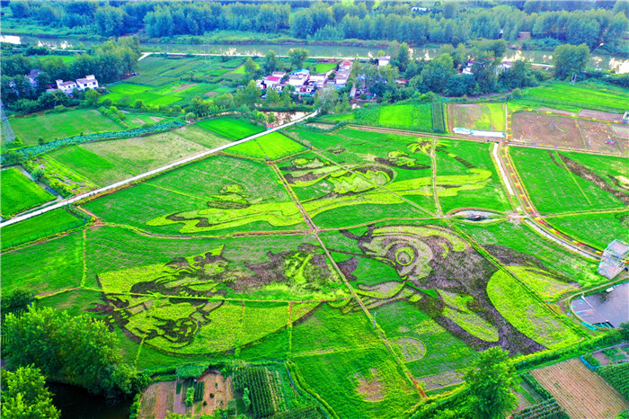固始縣大別山農(nóng)業(yè)藝術(shù)公社的稻田畫惟妙惟肖,吸引了不少游客前來觀光打卡。