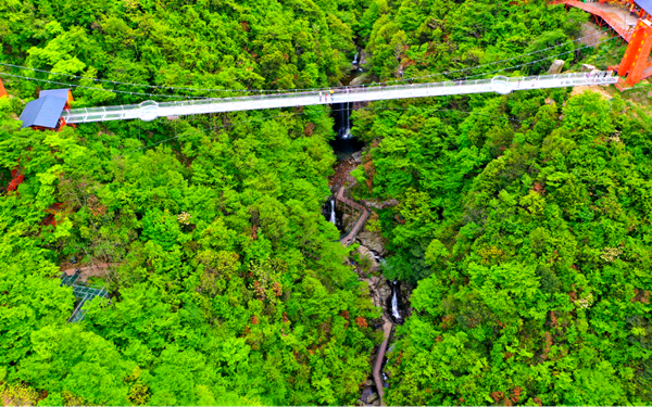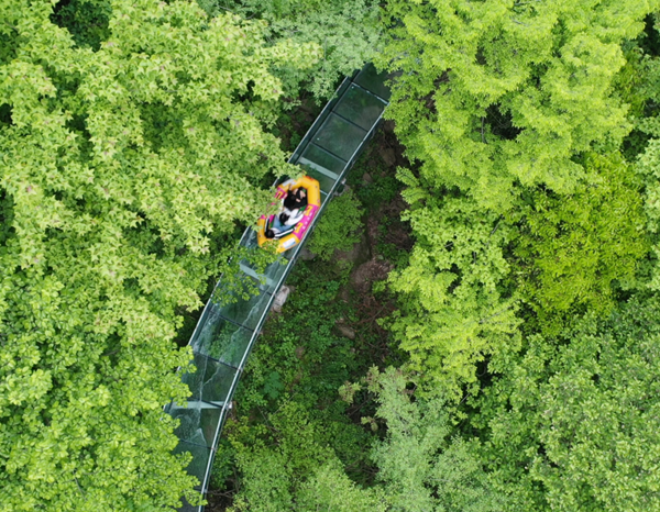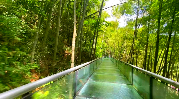 乘坐橡皮艇,優(yōu)質(zhì)清澈山泉水帶領(lǐng)下感受長達(dá)1000米高空玻璃漂流,腳下是茂密竹林,耳畔是呼嘯而過山風(fēng),從清涼的水花中一躍而過,一路飄蕩、一路歡叫。
