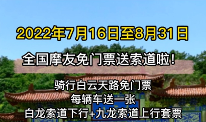 1.活動期間,贈送全國摩托車自駕游游客“白龍索道下行+九龍索道上行”套票1張/輛車。