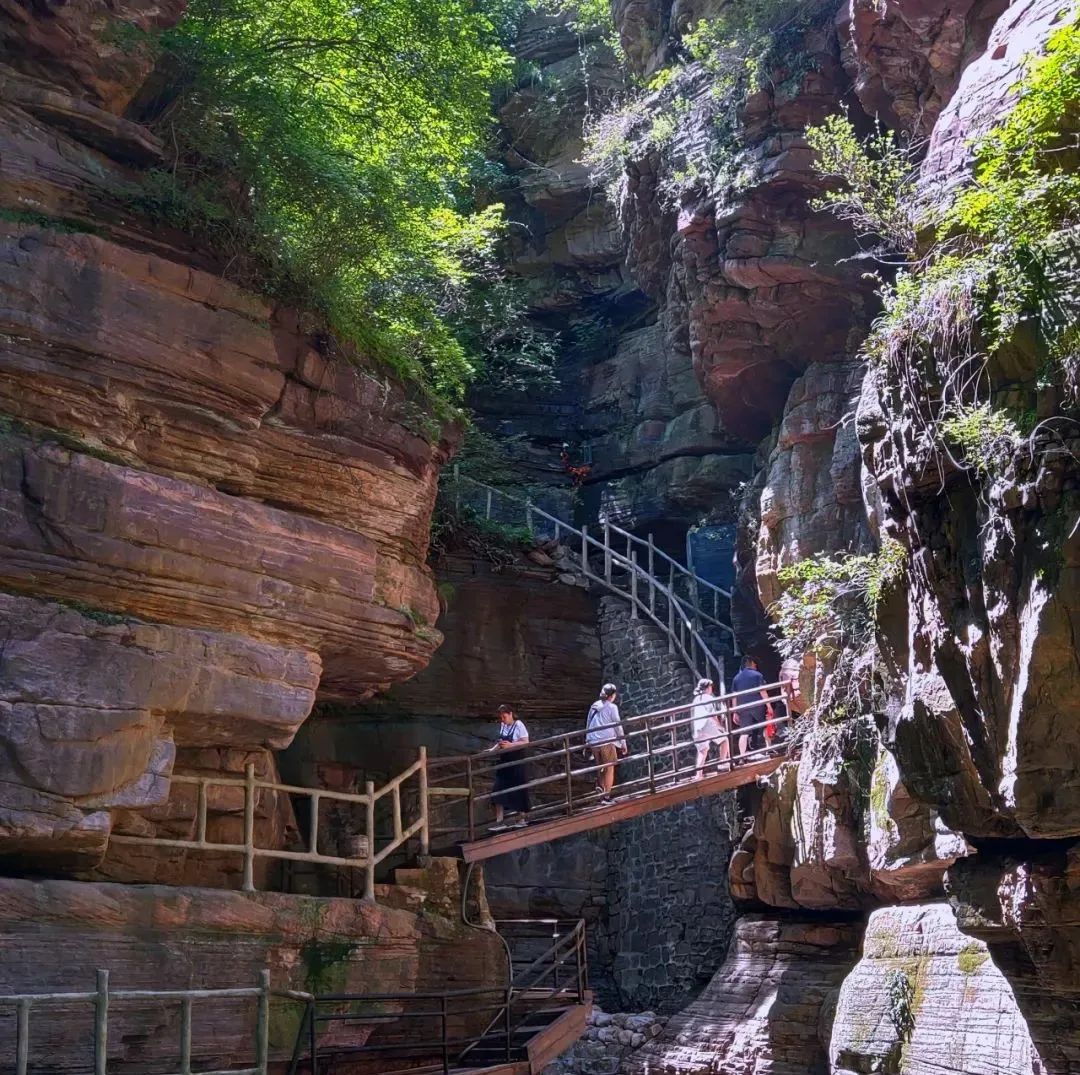 這里植被眾多,強(qiáng)烈的日光被隱天蔽日的樹(shù)木遮擋,只透下絲絲縷縷的光柱;這里空氣清新,負(fù)氧離子濃度較高,吸入的每一口空氣都是對(duì)肺的滋養(yǎng);這里依山傍水,峽谷清涼,夏季的浮躁在汩汩作響的溪水聲中悄然消逝……
