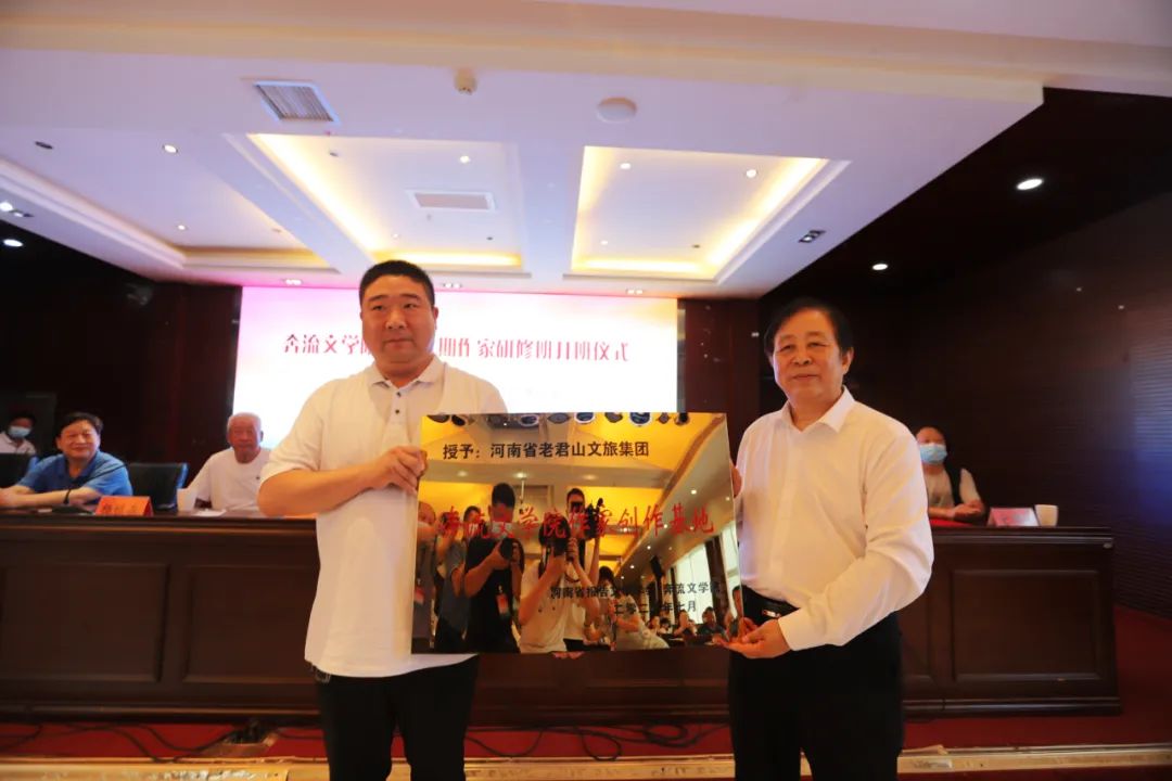 為繁榮文學(xué)事業(yè)發(fā)展,河南老君山文旅集團(tuán)“奔流文學(xué)院作家創(chuàng)作基地”正式掛牌成立,河南省報告文學(xué)學(xué)會會長、時代報告雜志社社長張富領(lǐng)同志為老君山文旅集團(tuán)授牌。