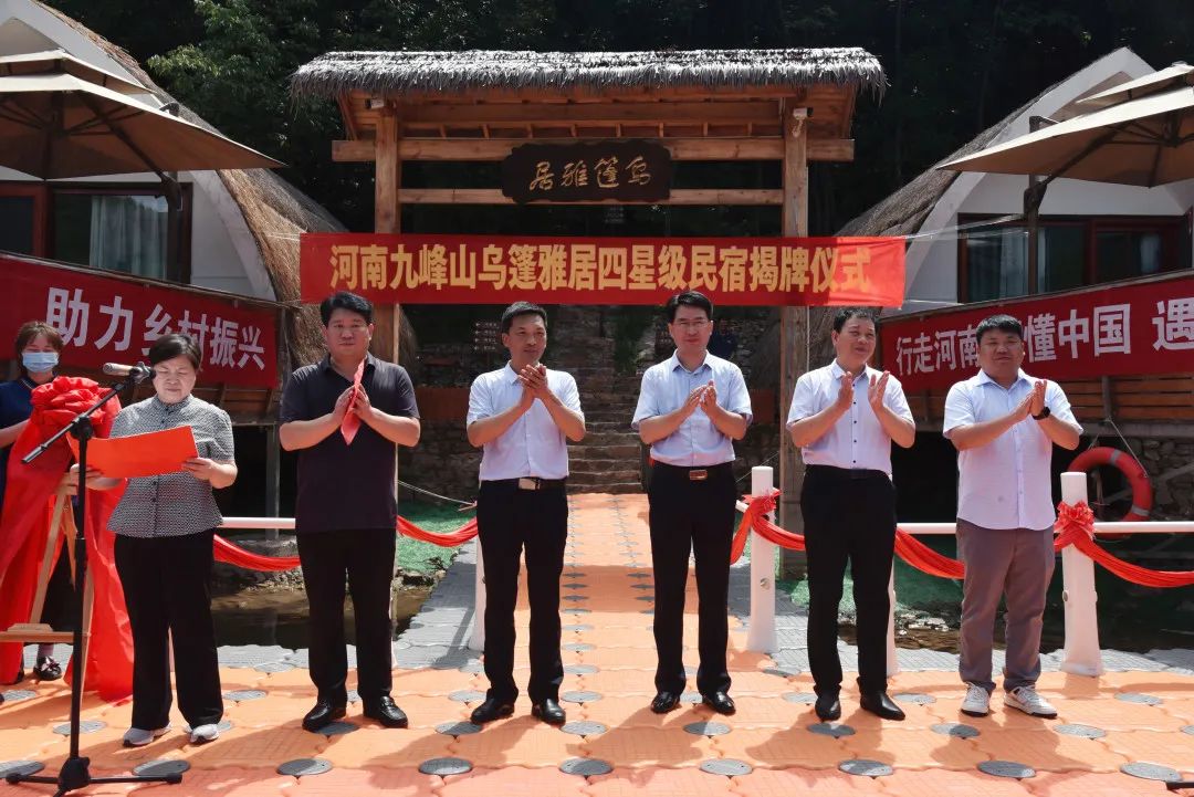 7月18日,河南九峰山烏篷雅居四星級(jí)民宿揭牌儀式在碧波蕩漾的情侶湖畔舉行。汝州市市委常委、宣傳部長(zhǎng)、副市長(zhǎng)趙戰(zhàn)營(yíng),汝州市文化廣電和旅游局局長(zhǎng)李玉政,汝州市文化廣電和旅游局黨組書記張志強(qiáng),寄料鎮(zhèn)黨委書記高項(xiàng)冰,萬(wàn)基集團(tuán)董事長(zhǎng)李冠初等參加本次揭牌儀式。