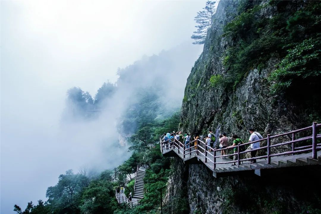 纏綿的雨絲在山間飄忽不定,隔著重重雨幕,老君山在氤氳紗霧中時(shí)隱時(shí)現(xiàn),游人穿著花花綠綠的雨衣,走在細(xì)雨纏綿的山間,縹緲的云霧,秀麗的山水,使雨中的老君山顯得格外浪漫。雨停歇后,在老君山放眼望去,那逐漸升起的云霧,慢慢沿著山坡爬升......此時(shí)的美景,如騰云駕霧一般,讓你一時(shí)看不出是云霧在飄,還是山景在動(dòng),一切美得讓人心動(dòng)!