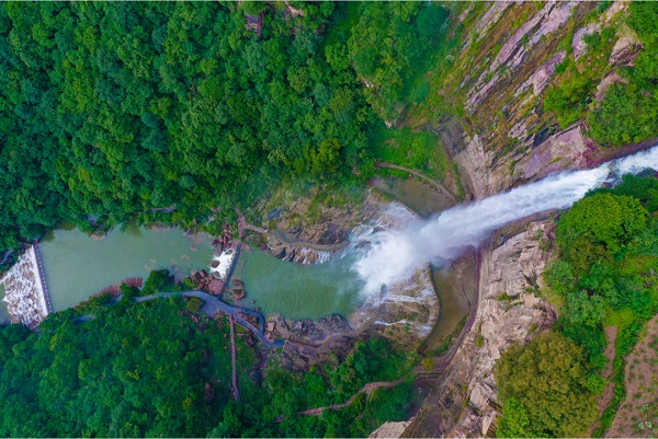 更令人震撼的是天河瀑布和天壺瀑布,從百米高的崖頂?shù)涔鹊祝丝唐僖蛏降男蹨喍`動(dòng),山因瀑的輕盈而雋永,動(dòng)靜相宜,和諧而又自然。