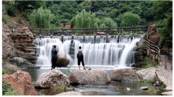 隨處可見(jiàn)曲水流觴,淺灘激流,飛瀑直下,泉水叮咚。