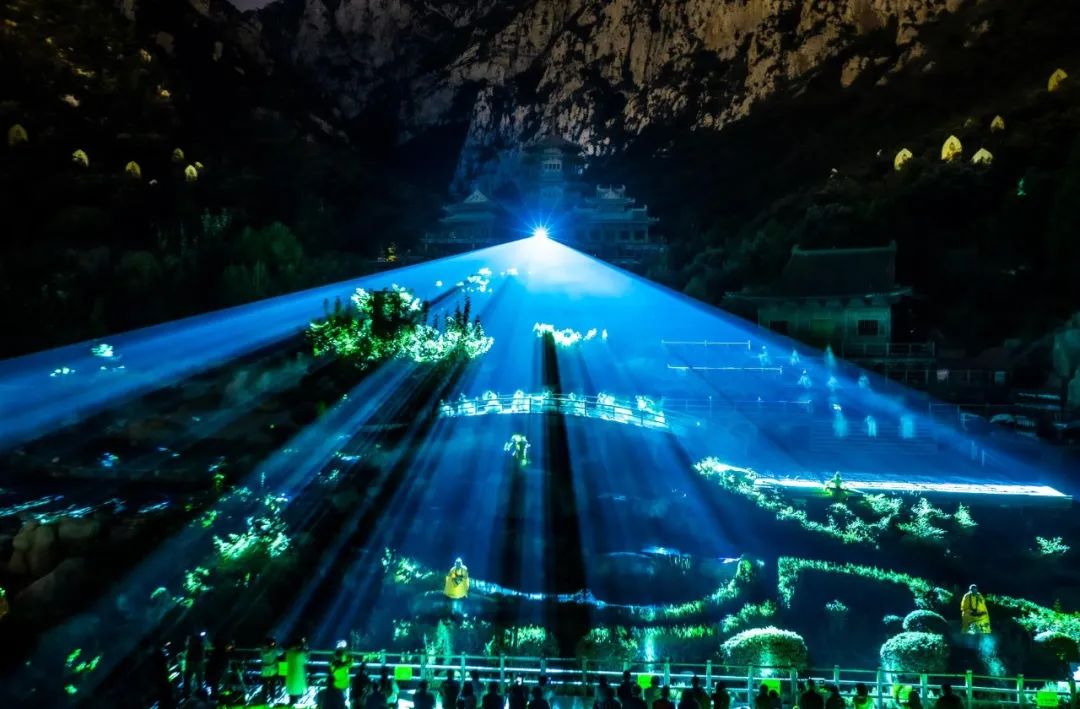 《禪宗少林·音樂大典》中岳嵩山大型山地實(shí)景演出,夏季換新場(chǎng)景,酷暑中邂逅“飛雪明月”。