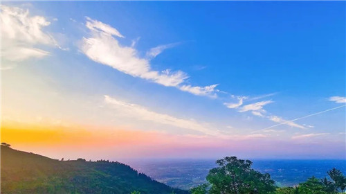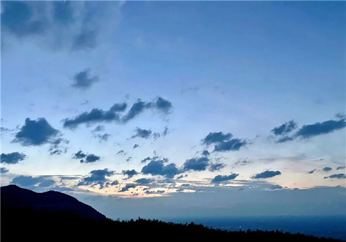 每當(dāng)太陽公公逐漸落下,站在西九華之上望向天邊,落日、云彩、山景,匯聚成一幅美麗的夏日晚霞風(fēng)景畫。