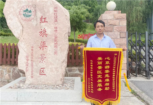 近日,紅旗渠景區(qū)收到了一位江蘇游客的快遞,里面裝著一份沉甸甸的情誼——一封手寫信、一面錦旗,字里行間滿是贊許。