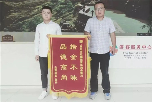 △景區(qū)職工拾金不昧,游客贈(zèng)錦旗致謝。