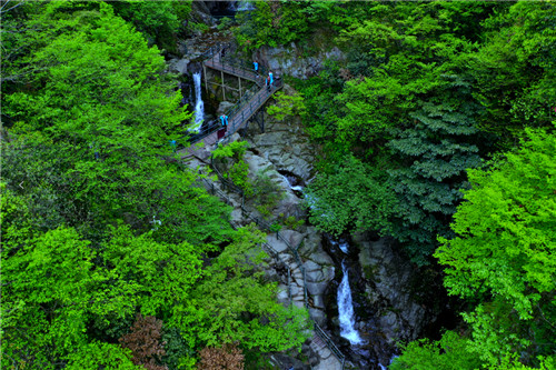 高山流水將龍津溪地形成大大小小瀑布群,賜予了我們?nèi)绱嗣谰,連青山倒映在水中亦是別有一番風味。