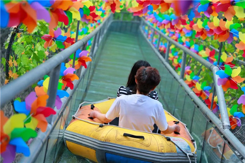 如果說夏季和什么最配,那一定是水,在龍津溪地坐上皮筏艇,感受風與水帶來的爽氣,這不就應了王維那句“舟行碧波上,人在畫中游”。