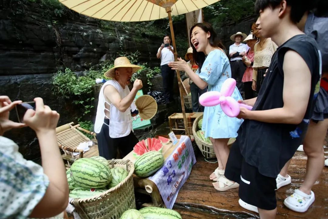 佛系賣瓜的潭老頭引起了游客圍觀,