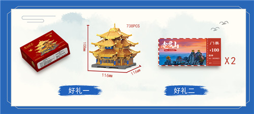 好禮一:凡購買任意一款“君山道夢”系列IP數(shù)字藏品的用戶,均贈送實體創(chuàng)世禮、老君山獨家周邊『老君山五母金殿積木1份』,絕無僅有,市場價值128元。首期獲得創(chuàng)世禮的朋友,在第二期將有額外權益。