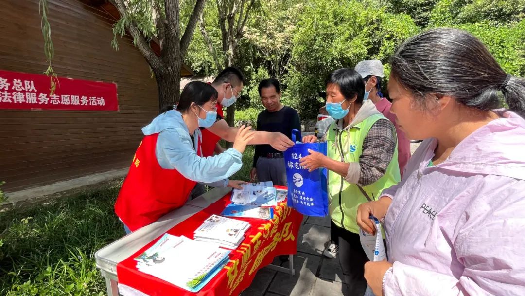工作人員現(xiàn)場(chǎng)為群眾講解并發(fā)放普法手冊(cè)小禮包。