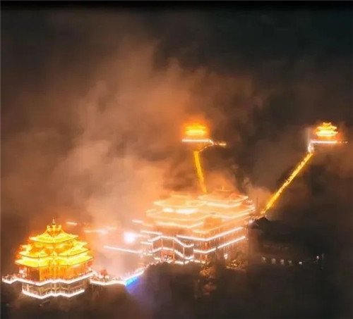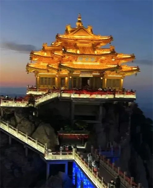 夜晚的老君山,有一種白日喧囂過后的華燈夜色,它不像城市夜晚的夸張與喧嘩,而是安逸、美麗與寧靜的,是俯仰之間不經(jīng)意的美……金頂與暖黃色的燈光交相輝映,大自然的寧靜,與建筑群燈光完美的融合在一起,古樸而富有質(zhì)感,這里仿似云上天宮,將一切的美景都變得神秘與迷離。
