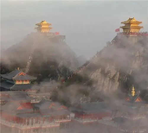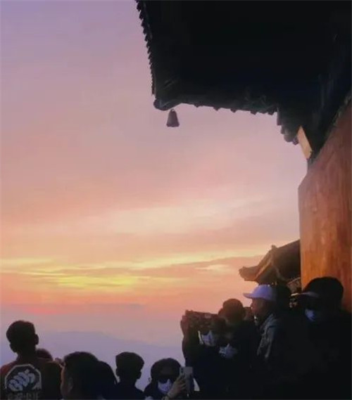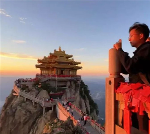老君山的日落當(dāng)是人間浪漫販賣機(jī),每一個(gè)天氣晴好的日子,當(dāng)白晝漸漸退去,當(dāng)碧藍(lán)落入橘調(diào),當(dāng)落日的余暉灑在金殿,沒有煙火,沒有雜塵,只有光和希望,它總能讓人在黑夜中回憶起,一些美好的遺忘已久的記憶。