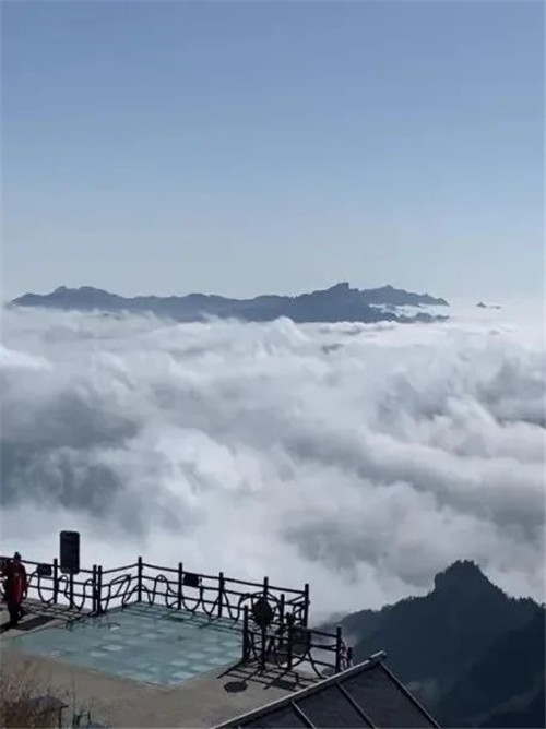 云海是老君山的一大奇觀,當(dāng)云海出現(xiàn)時(shí),放眼望去,云遮千里,霧鎖萬峰,猶如站在碧波萬頃的汪洋大海之中,翠峰隱現(xiàn)似動若靜,在上晴下陰的云海出現(xiàn)時(shí),顯現(xiàn)出“海到天涯天為岸,山至極頂人為峰”的景觀。