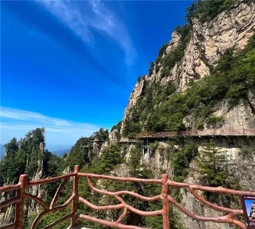 老君山的十里畫屏有大大小小石峰千余座,一步一景,景景如畫,踏上懸空棧道,面臨懸崖峭壁,腳下的云霧翻騰,戰(zhàn)戰(zhàn)兢兢,棧道下面,石林座座,可謂是群峰競秀,當(dāng)?shù)巧仙巾數(shù)哪且凰查g,眾覽這群山云嶺,山林溝壑,不禁驚嘆于大自然的鬼斧神工。