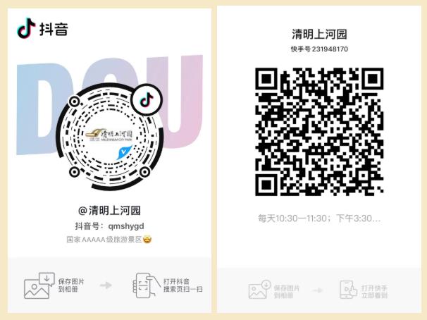 ③識別下方二維碼,鎖定清明上河園抖音/快手直播間,關(guān)注直播,獲得一手游玩攻略!