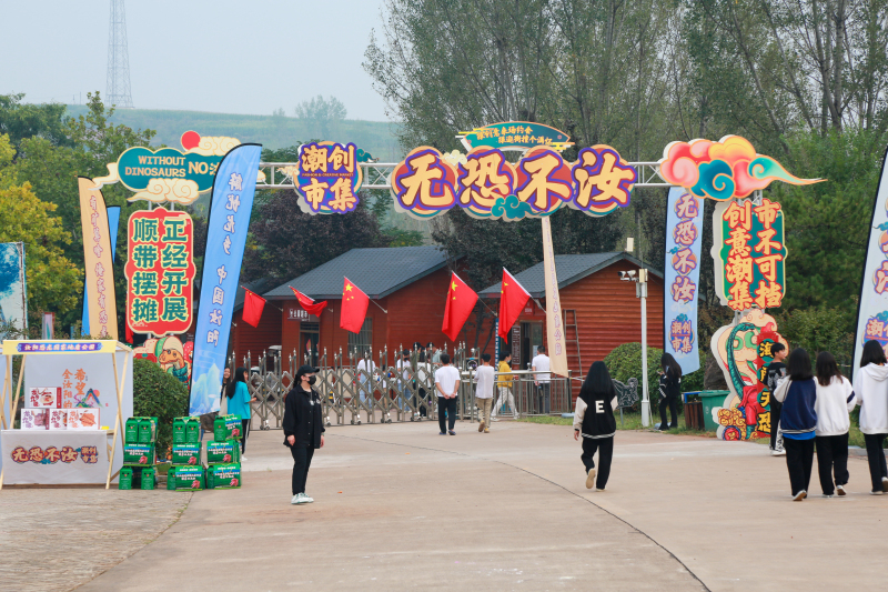 同時(shí),2022“黃河巨龍杯”中國(guó)•汝陽(yáng)文創(chuàng)大賽優(yōu)秀作品展覽也在汝陽(yáng)恐龍國(guó)家地質(zhì)公園閃亮登場(chǎng),別致的展覽創(chuàng)意結(jié)合展出的優(yōu)秀文創(chuàng)作品,讓人眼前一亮。此次展覽采用市集方式布展,展覽與市集融合,利用文創(chuàng)作品展覽,營(yíng)造文創(chuàng)與旅游融合的豐富體驗(yàn)形式,用集市的場(chǎng)景化增強(qiáng)游客的沉浸體驗(yàn)感受,用文創(chuàng)產(chǎn)品講述恐龍文化和汝陽(yáng)故事。為大家呈現(xiàn)了一場(chǎng)別開生面的文化創(chuàng)意視覺盛宴!同時(shí)也為祖國(guó)獻(xiàn)上了一份汝陽(yáng)專屬的文化生日賀禮!