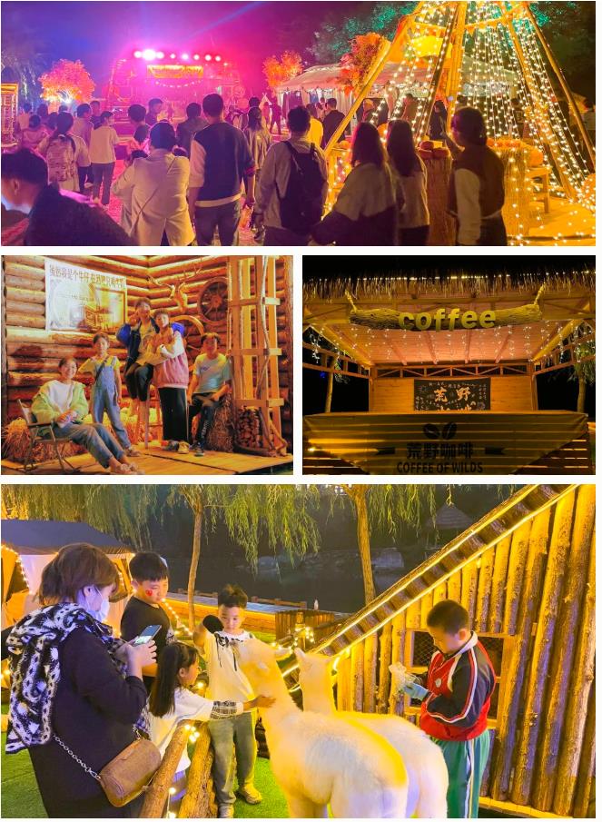 夜晚的豐收營地燈火通明,到處閃耀著橘黃色的星星,引得游客們在打卡地爭相打卡,在微醺小酒館來一杯雞尾酒,渾身都是暖洋洋。