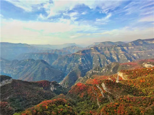 此時(shí)青天河紅葉已進(jìn)入觀賞期,紅葉主要色調(diào)以“紅、橙、黃”為主,漫山遍野的紅葉正競(jìng)相盛放,仿佛要獨(dú)占秋天的舞臺(tái)。