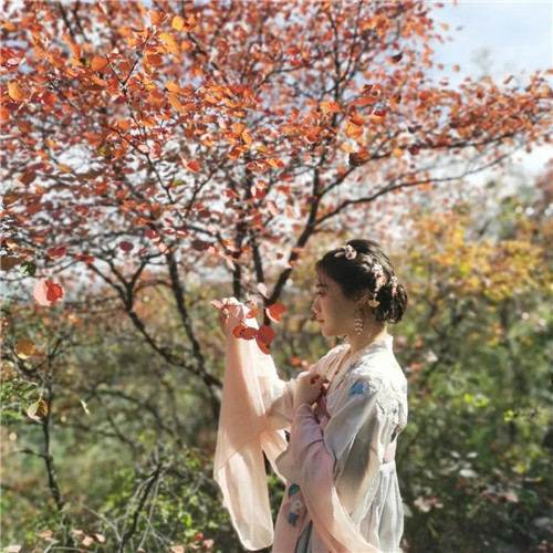 “我與春風(fēng)皆過(guò)客,你攜秋水?dāng)埿呛?rdquo;,青天河秋色與美人應(yīng)景,一襲華麗漢服,恍若又穿越時(shí)空,抬眼卻是漫山紅葉惹人沉醉。