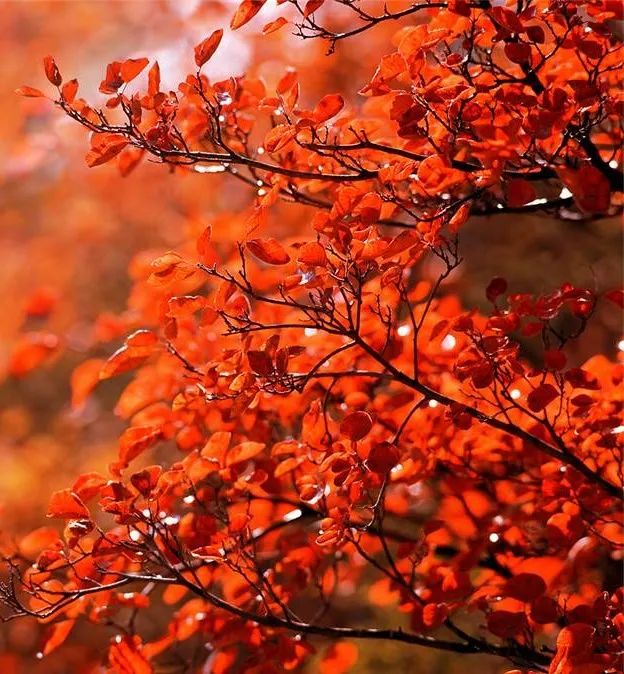 行走在五彩斑斕的紅葉海中,一縷縷陽(yáng)光打在枝葉上,晶瑩、透亮,如同點(diǎn)點(diǎn)彩色筆觸。