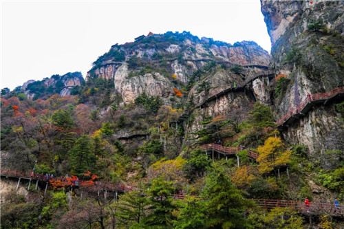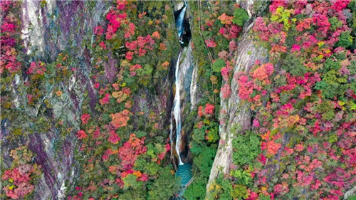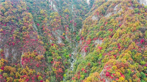 一旦入了秋,就入了畫中,溪澗奇瀑上,山崖峭壁上,五彩點(diǎn)綴其中,如臨仙境,這就是接下來的老君山。
