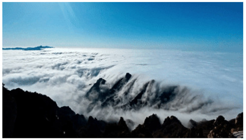 當人們在高山之巔俯首云層時,看到的是漫無邊際的云,如臨于大海之濱,波起峰涌,所以人們就把這一現(xiàn)象為“云海”。