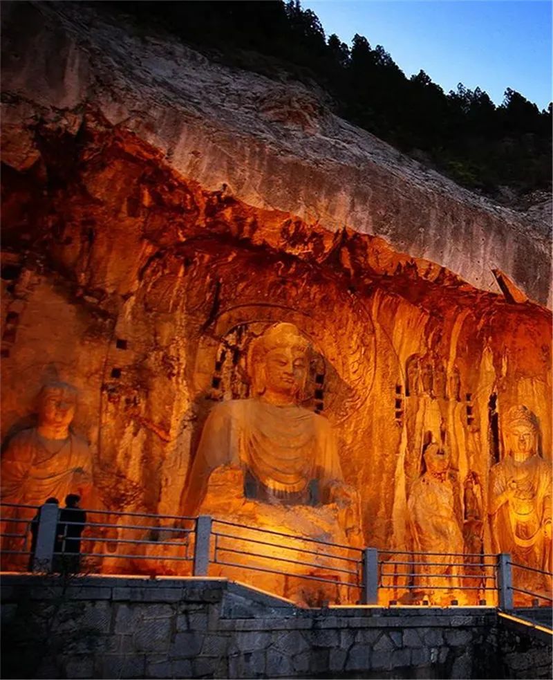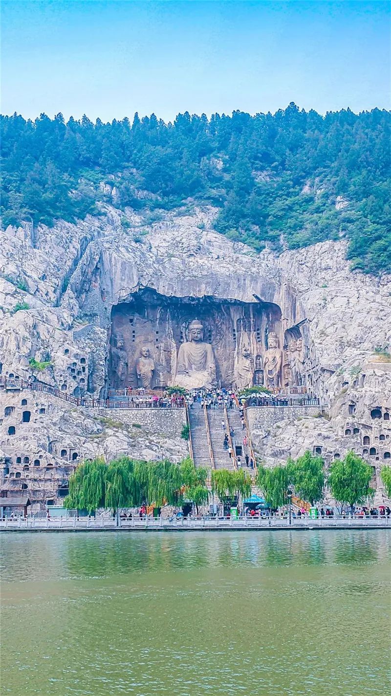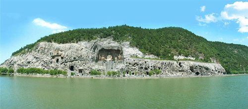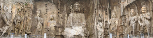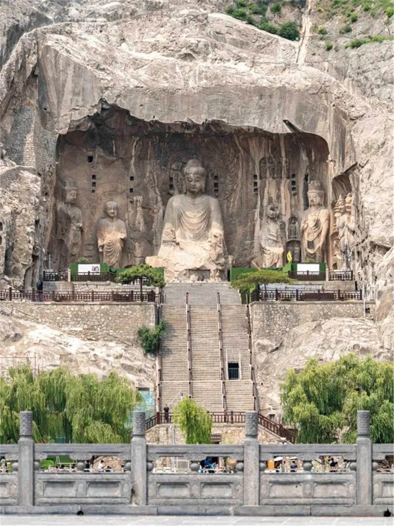 龍門石窟開鑿于北魏孝文帝遷都洛陽之際(公元493年),之后歷經(jīng)東魏、西魏、北齊、隋、唐、五代的營造,從而形成了南北長達(dá)1公里、具有2300余座窟龕、10萬余尊造像、2800余塊碑刻題記的石窟遺存。由于地處都城之南,古代帝王擬己為“真龍?zhí)熳?rdquo;,故又稱“龍門”。