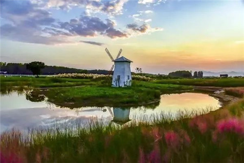 濟(jì)水源牡丹花園好像一幅彩色的油畫。黃昏下的蘆葦隨風(fēng)搖曳,大片的粉黛亂子草自帶浪漫風(fēng)情,美到窒息?諘绲牟莸厣,小馬駒、小羊羔怡然自得地吃草、散步,萌態(tài)十足。、