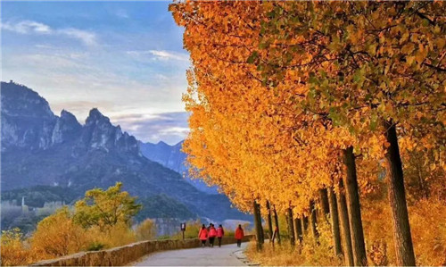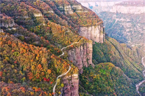 此時的新鄉(xiāng)南太行,美得不可方物,好像是打翻了調(diào)色盤一樣,滿眼的黃色、橙色、紅色,映著暖融融的陽光,在藍(lán)天白云的映襯下,目光所及皆是成熟的韻味。
