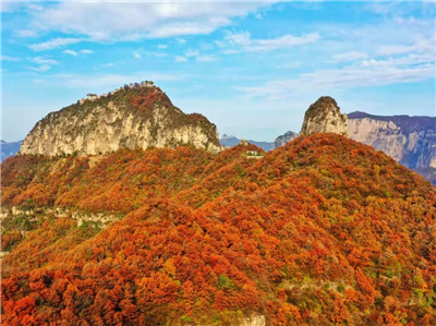 此時,美麗的初冬美景已經全新上線,新鄉(xiāng)南太行已經徹底美成了一幅畫,放眼望去,秋林盡染,紅葉爛漫,在層疊的山巒中盡情綻放,陶醉了萬里山河,更陶醉了蕓蕓眾生。