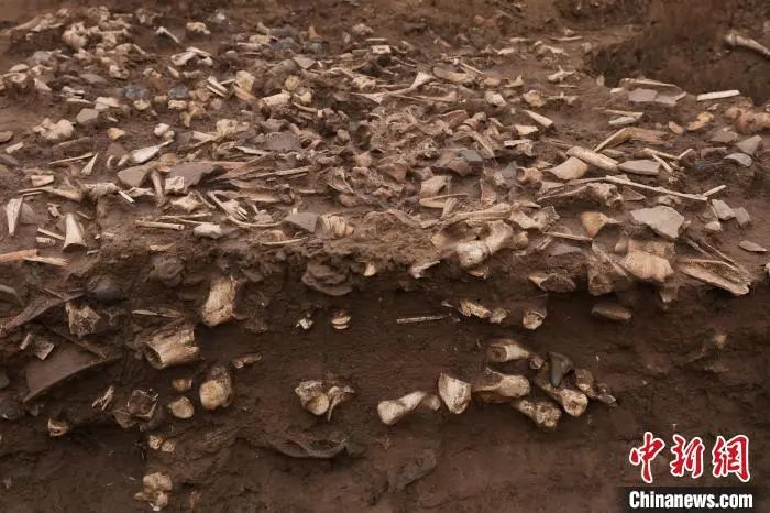 洹北商城制骨作坊骨料坑H32局部堆積 國(guó)家文物局供圖