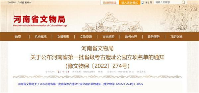 河南省第一批省級考古遺址公園立項(xiàng)名單(共11個(gè))