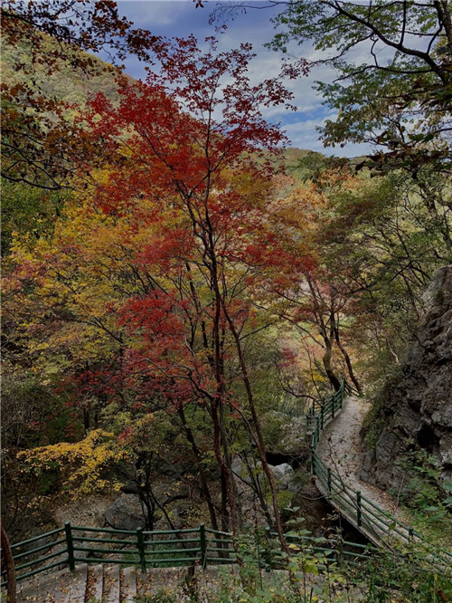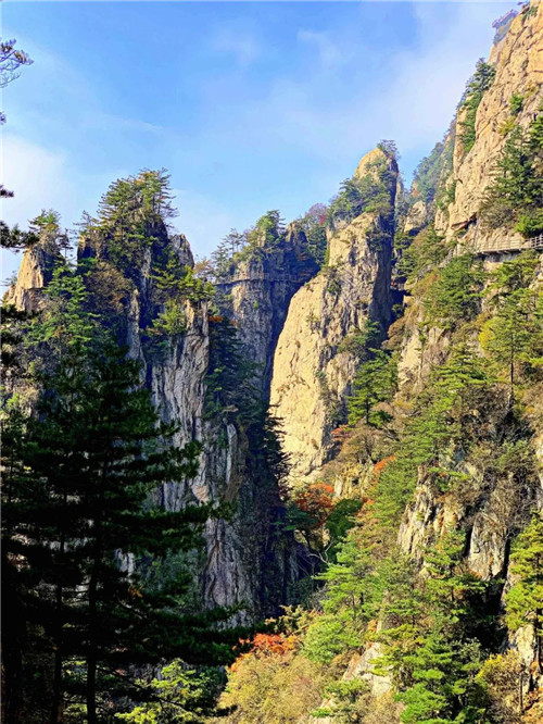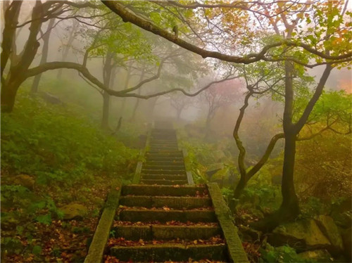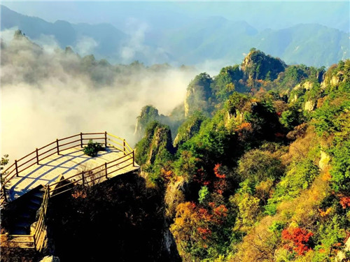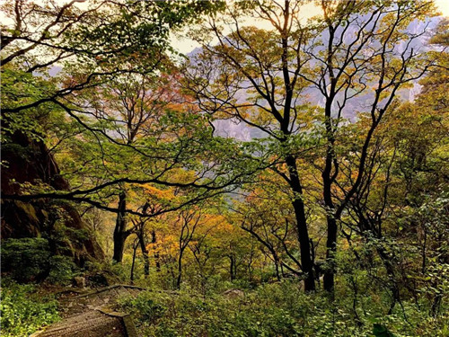 一場(chǎng)秋雨過后,秋色與老君山融為一體,場(chǎng)景幽靜,引人入勝。這里幽靜又古樸,好似一個(gè)風(fēng)景秀麗的桃源秘境。