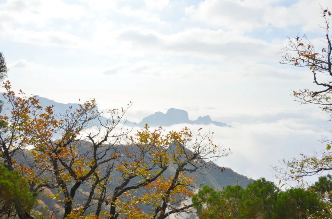 山間斑斕的色彩,時而被濃霧遮蔽,時而若隱若現(xiàn),在潔白薄霧的襯托下,更加美得不可方物。