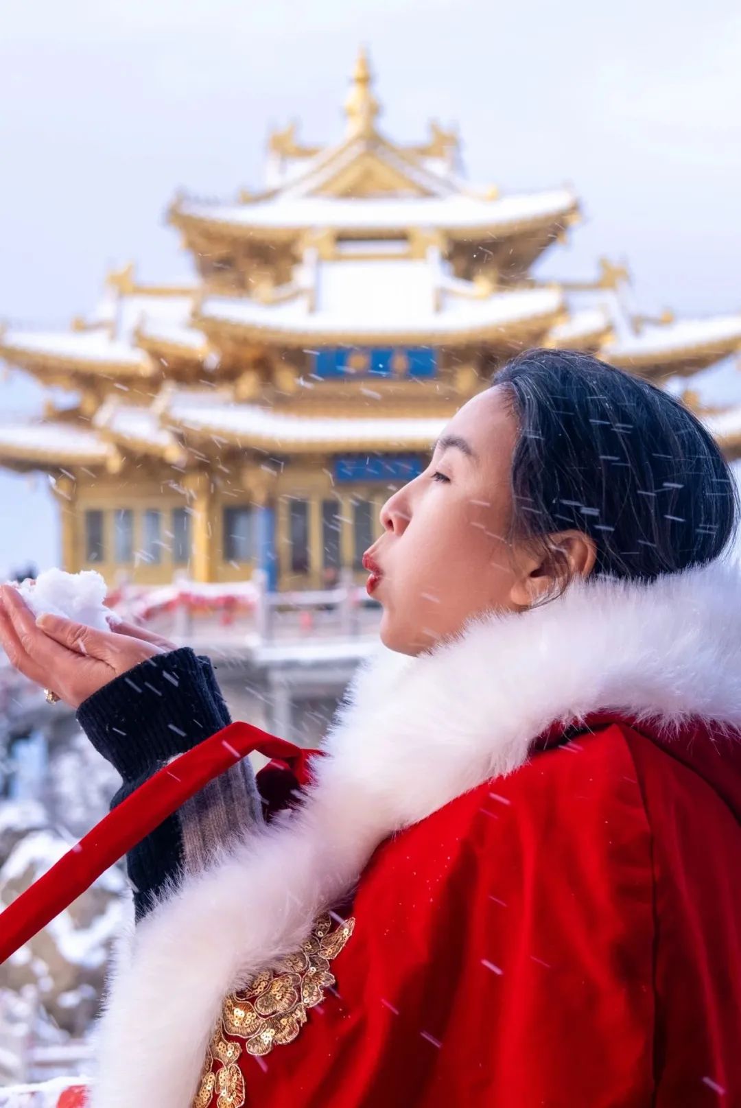 提前準(zhǔn)備暖寶寶貼,帶上最最保暖的羽絨服/加絨斗篷、棉靴;拍攝點(diǎn)可以選擇在十里畫屏、金殿、亮寶臺(tái)、夷希廊、藏經(jīng)閣等地;漢服一穿,款款走來(lái),誰(shuí)拍誰(shuí)好看!