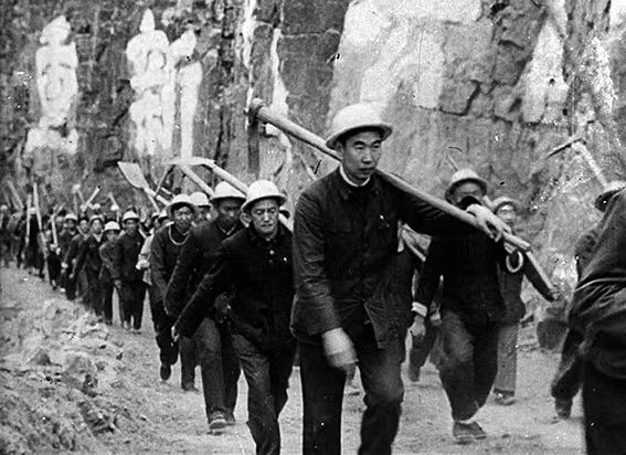 二十世紀(jì)六十年代,河南林縣(今林州市)55萬人民在黨的領(lǐng)導(dǎo)下,硬是靠著一錘一釬一雙手,絕壁穿石、挖渠千里,在壁立千仞的太行山上削平1250座山頭、鑿?fù)?11個(gè)隧洞、架設(shè)152座渡槽,建成了長達(dá)1500公里的“人工天河”紅旗渠,解決了60萬人飲水,54萬畝耕地灌溉的問題,英雄的林縣人民用自己的拼搏和汗水詮釋了奮斗的真諦,也把中華民族的一面精神旗幟,插在了太行之巔。