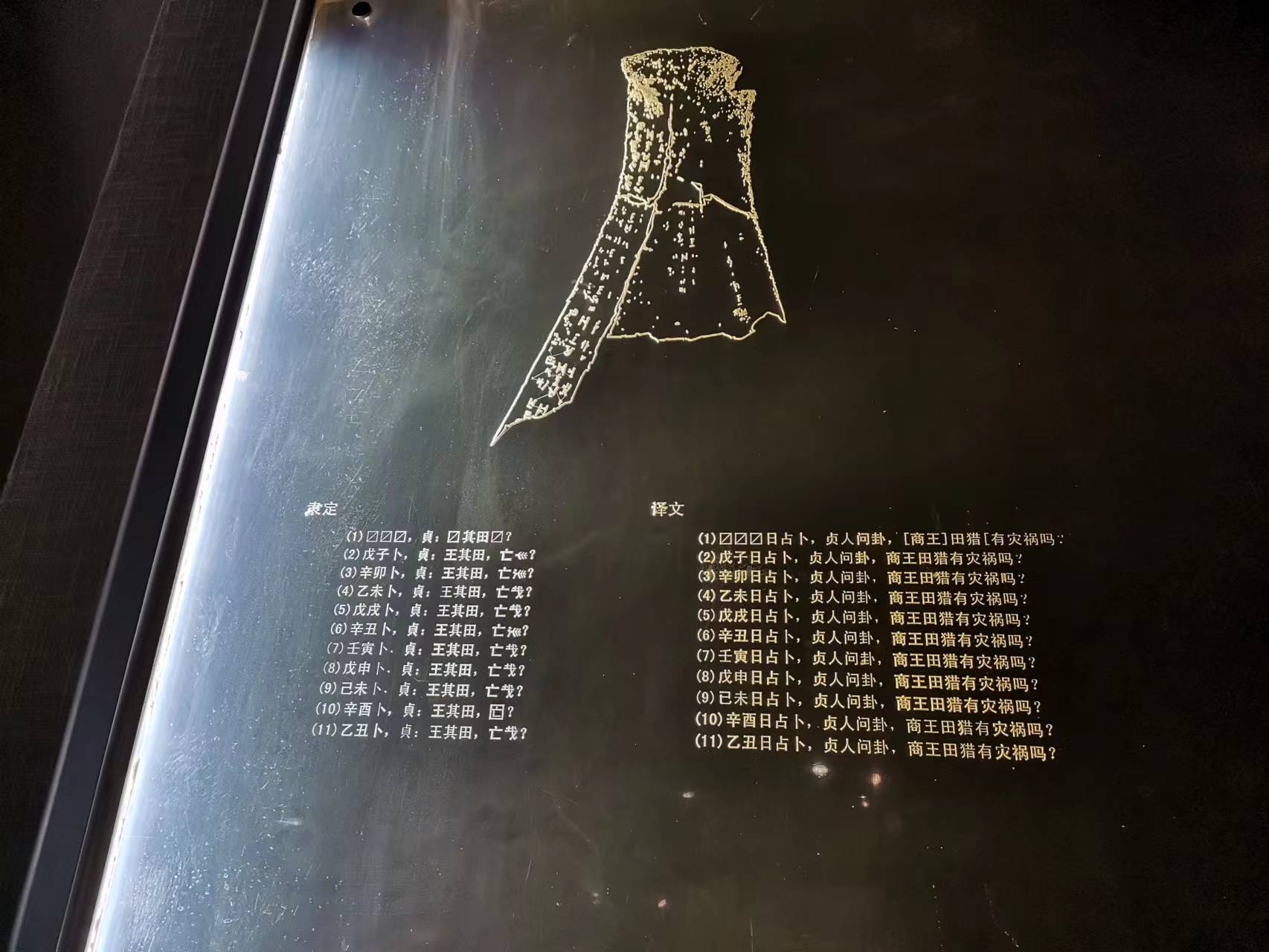 一字一世界,一筆一乾坤。甲骨凝固了先人一刻一畫(huà)的智慧。日月星辰、江河湖海、山川州谷,皆是古人對(duì)自然、對(duì)宇宙的具象化解讀,那是他們認(rèn)識(shí)和表達(dá)世界最初的方式。一個(gè)“晶”字,星星點(diǎn)點(diǎn),閃爍璀璨,宛在其中。“國(guó)之大事,在祀與戎。”戰(zhàn)爭(zhēng)、祭祀、天氣、疾病,皆鐫刻于甲骨的卜辭之上。“貞,王夢(mèng)婦好”。婦好去世十年后,有一片甲骨刻下了武丁銘心的思念。