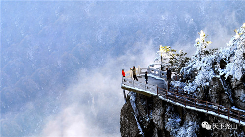 以伏牛神話為底色的山水勝景,在雪的裝扮下,如瑤臺仙境般美妙。千山萬壑,粉妝玉琢,皓色熒熒;天宇大地,寒霧氤氳,蒼蒼茫茫。