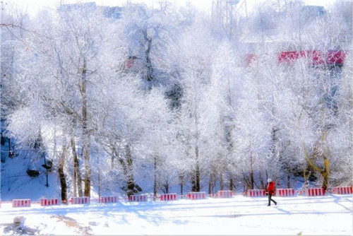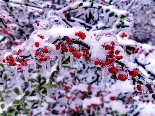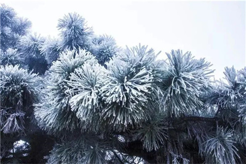 此時(shí)的雞公山是雨凇組成的冰花世界,等再冷一些,就會(huì)看到晶瑩剔透的冰裹嵌在草木之上,結(jié)成各種美麗的冰花和冰掛。滿枝滿樹(shù)的冰掛,猶如珠簾長(zhǎng)垂,山峰拂蕩,仿佛形成了一個(gè)琉璃世界。